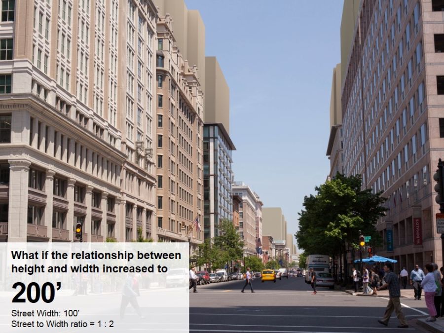 This page presents the Height Master Plan models of possible building heights if changes to the Height Act were made under different approaches. See the full Modeling Study Presentation for more details on the methodology and approaches. Check out the images below and let us know what you think. Move your mouse over the image to reveal the notes already posted, then roll over the notes to find out more.