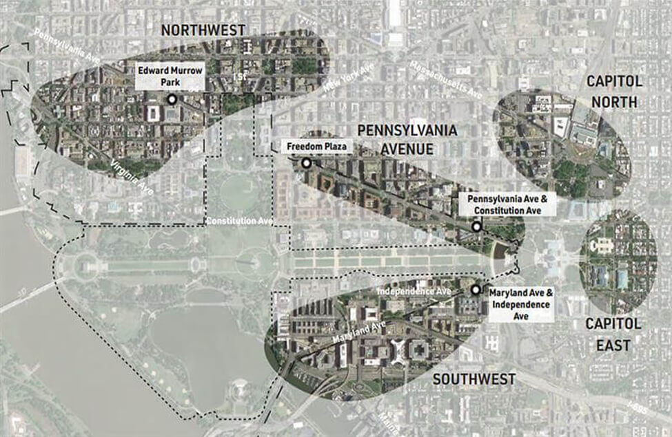 • Site A: the eastern portion of Freedom Plaza (on Pennsylvania Avenue)