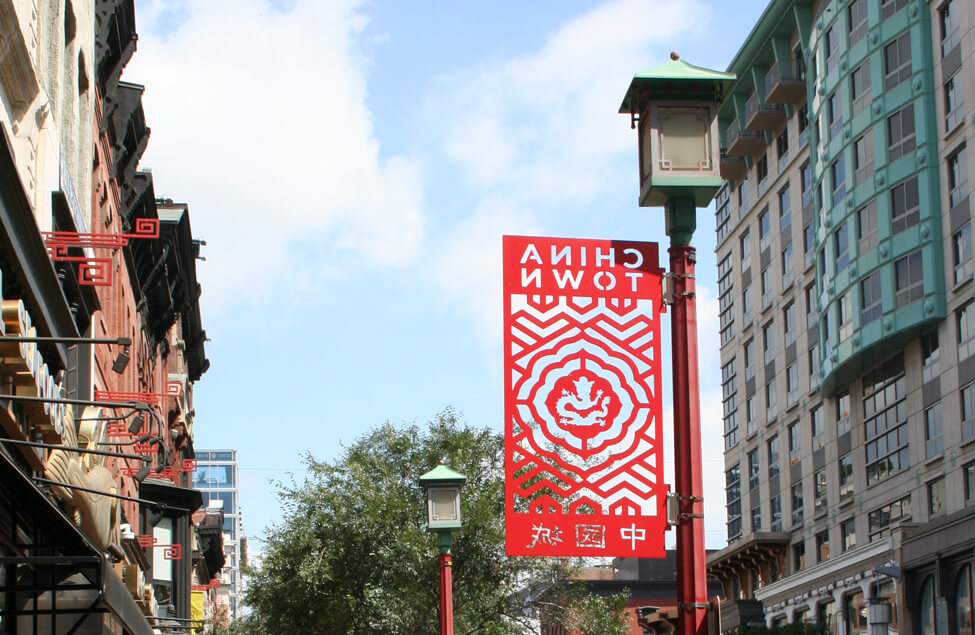 Resembling a traditional lantern, each of the four sides of a Chinatown Luminaire are rectangular and have a decorative border around the light-emitting pane. These colorful red and green painted streetlights indicate the general boundaries of Washington’s Chinatown district, lining 6th, 7th, H, and Eye Streets, NW, bounded by 5th, 9th, and G Streets, NW and Massachusetts Avenue, NW. In addition to Chinatown’s signs, banners, and building ornamentations, these streetlights reflect the neighborhood’s Chinese heritage.52. 2013 DDOT Streetlight and Policy Standards, p. ES-1. ↩