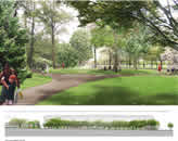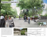 This scheme embeds this security in an integrated landscape design that regenerates the nationally significant historic landscape design and revives its meanings by creating more pleasurable public experiences. The design draws its inspiration from Downing’s vision of a “large circular open space surrounded by an avenue of elms, a carriage drive, and a series of footpaths winding through shady groves.” The park’s new gardens will create those groves and paths while retaining the openness required for security. As Downing intended, these gardens will frame and emphasize the impressive expanse of the Ellipse and provide a pleasant contrast to the imposing, monumental spaces of the Mall. The new President’s Park incorporates security infrastructure and requirements completely and unobtrusively, so that public experience is one of a landscape with a diversity of trees and shrubs and restored sight lines to the South Lawn and the White House. President’s Park should more strongly demonstrate American democracy, becoming a unique expression of the close relationship between the people and their elected leader.